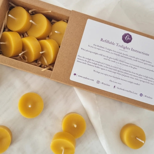 Glass Tealight Refills (10 pure beeswax tealight candles)